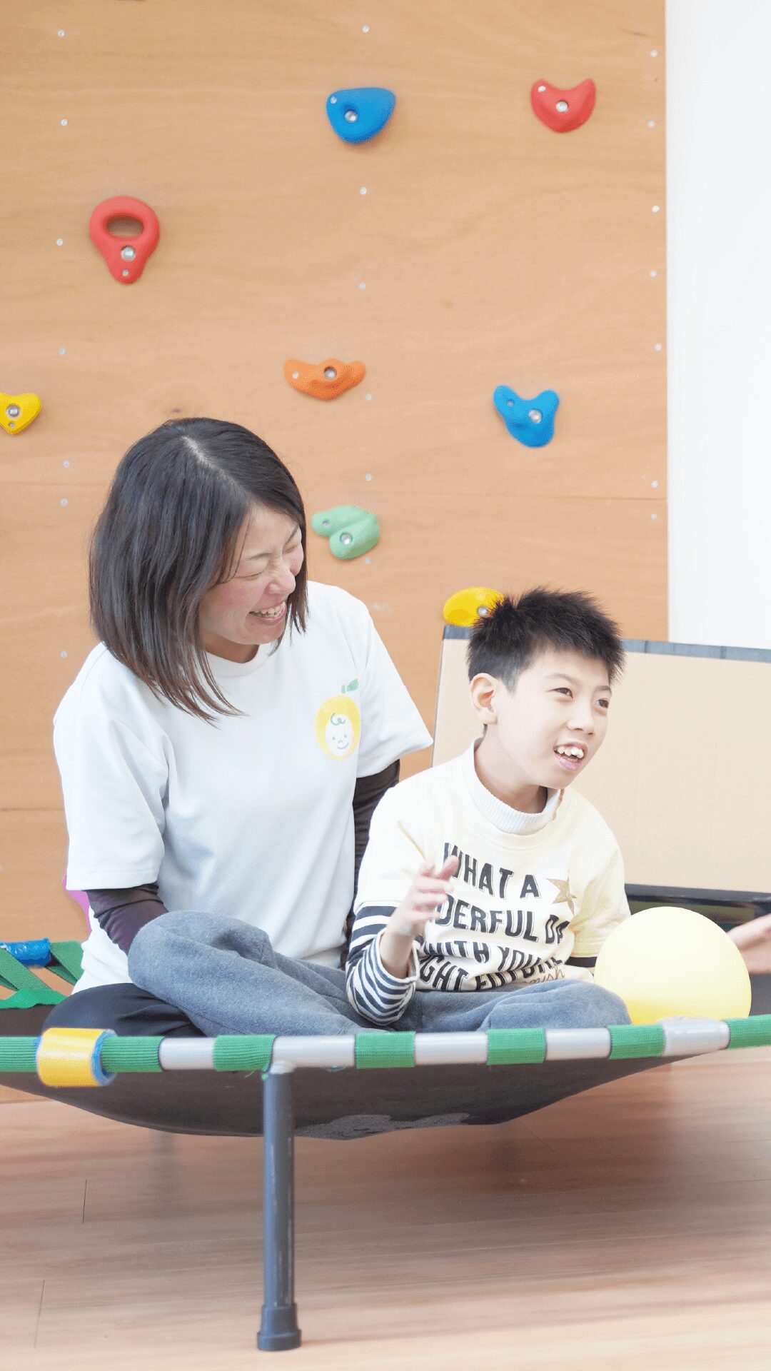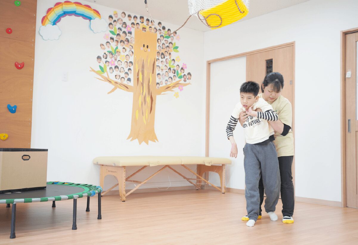 姿勢づくりや呼吸のサポート、日常生活動作の練習など専門的な視点から支援を行なっています。